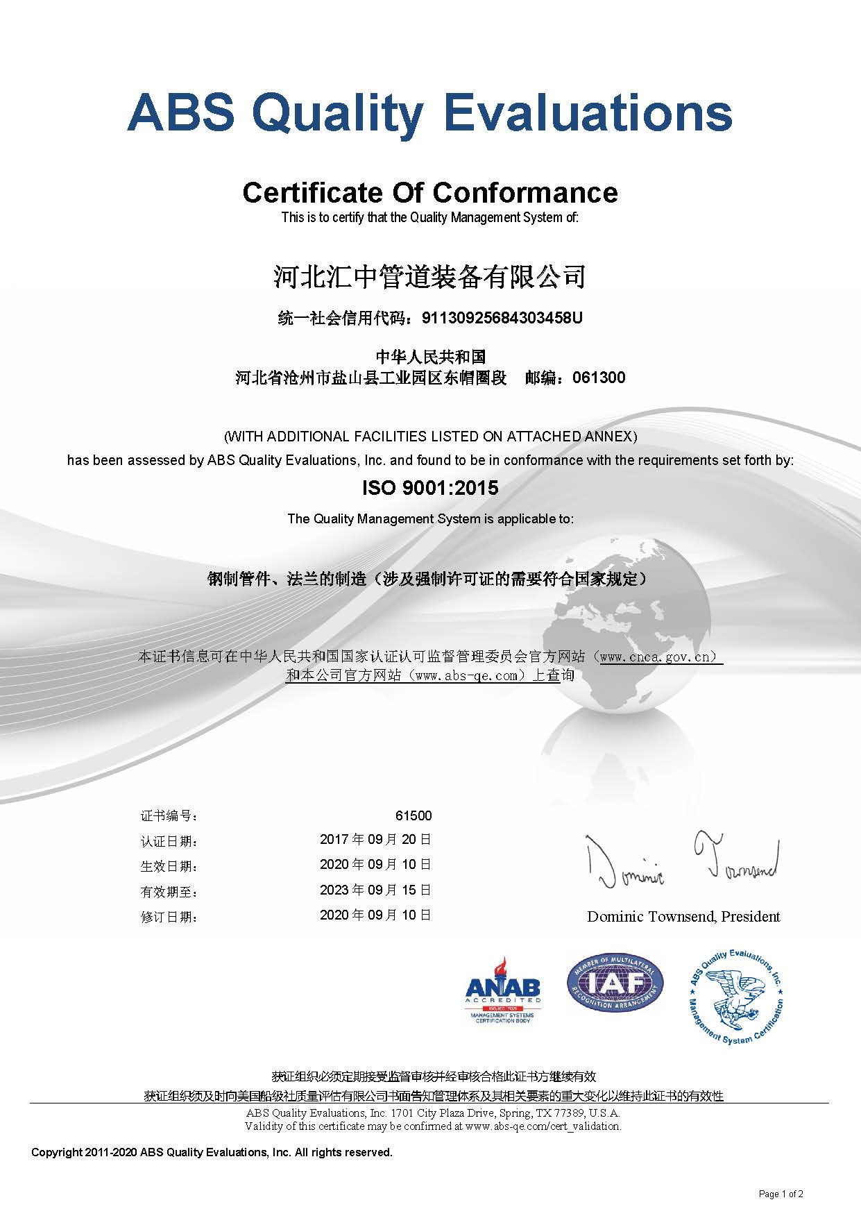 我公司通過(guò)美國(guó)石油協(xié)會(huì)APIQ1認(rèn)證