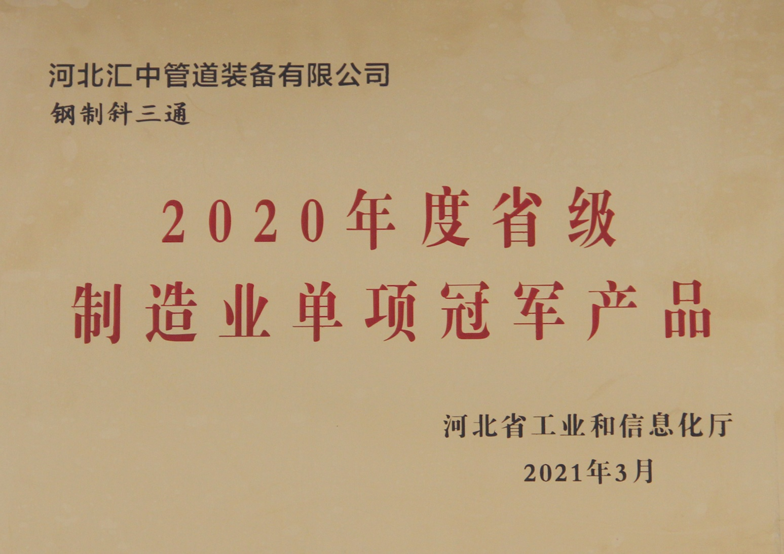 匯中斜三通獲評“河北省制造業單項冠軍產品”