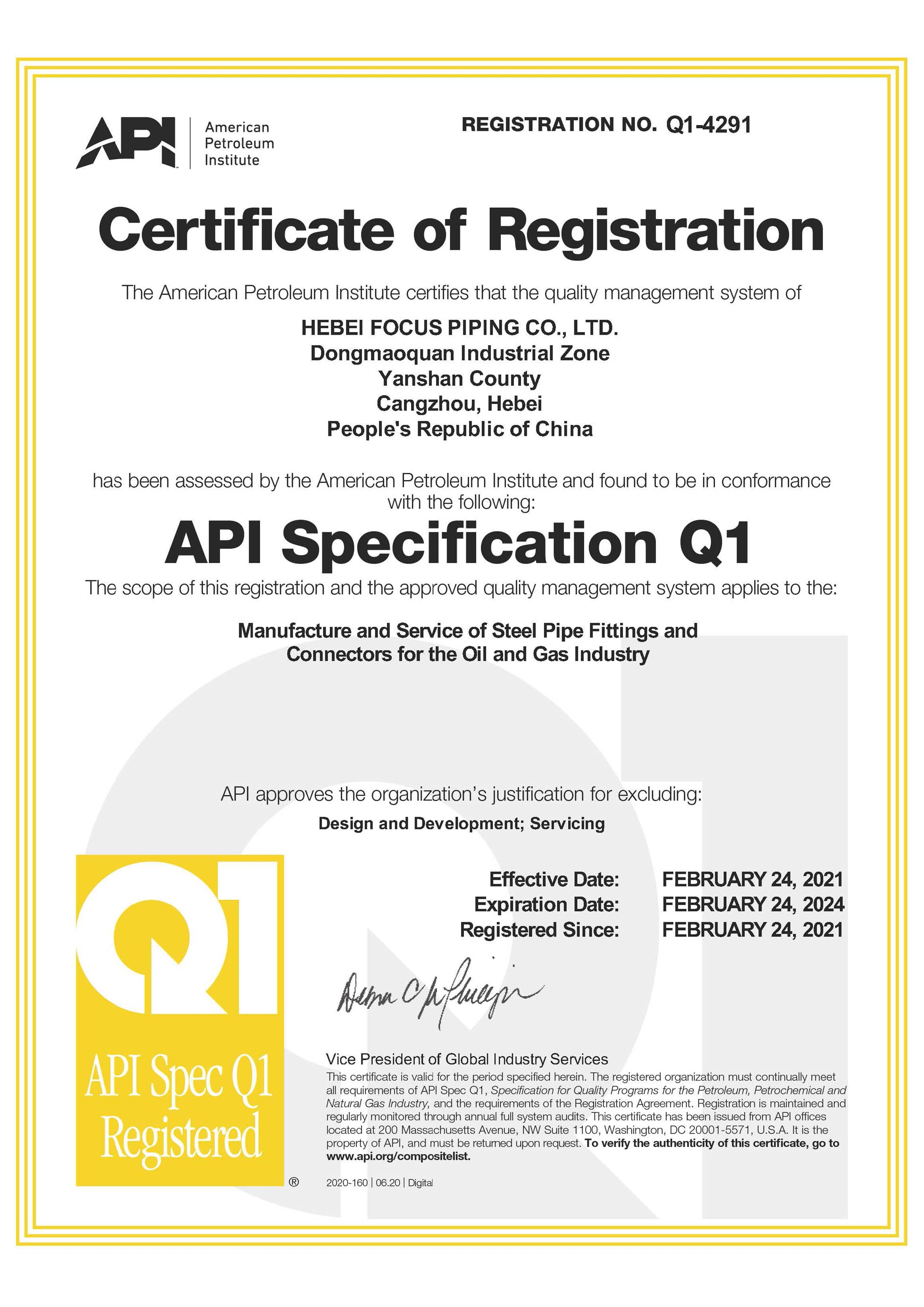 我公司通過美國石油協會API Q1認證